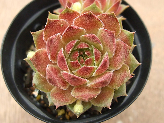 本種は中型種で葉の大きさ枚数は普通。暖かい時期のみだが珍しい黄色の発色が美しい。小さい頃から大きくなっても締まったズングリのロゼッタ。