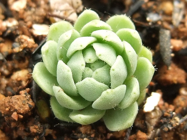 非常に珍しいロスラリアです。 白みの強い緑葉で、ロスラリアの中でも小型のロゼッタ種。普段は大人しい割りに花時期は他よりも大きく花穂を伸ばします。